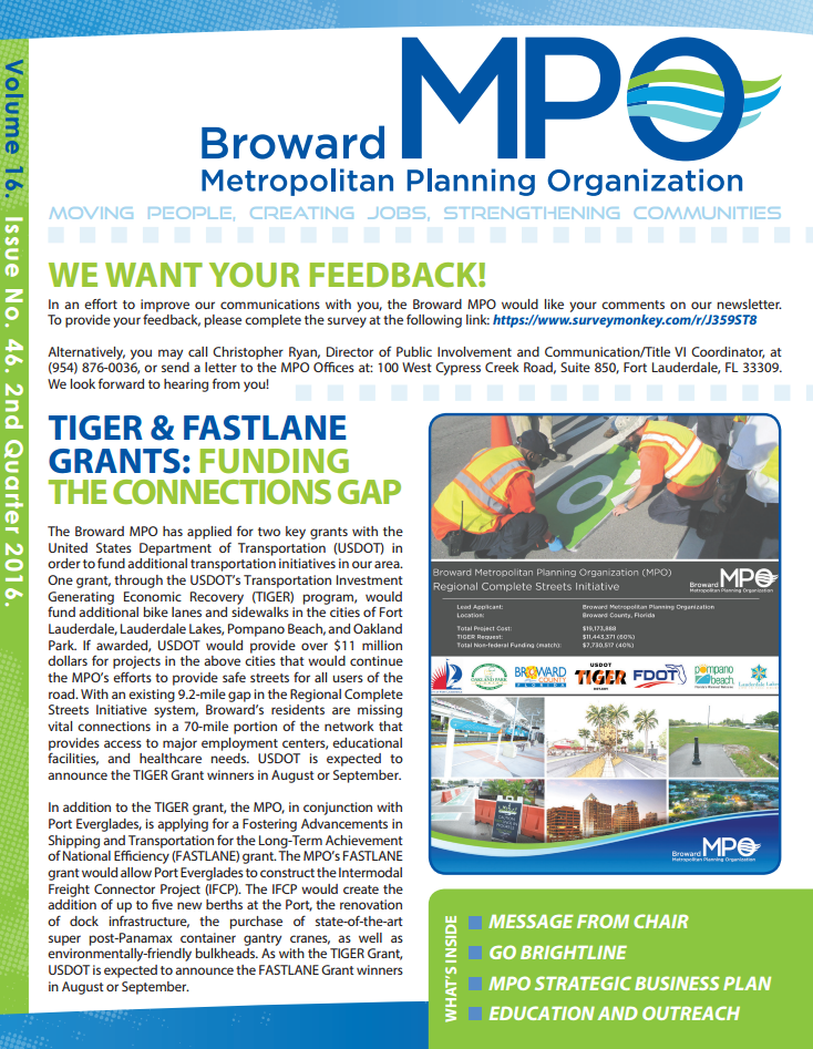 The Broward MPO wants your feedback on our newsletter. Please help us by taking this very brief (2 questions) survey.