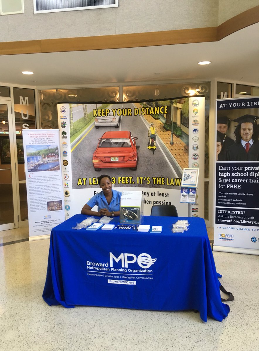 Two MPO tradeshow booths will be touring this summer at various Broward Community Centers and Libraries. One booth features a display on bike safety and the other includes graphics about the Broward MPO and what the organization does.