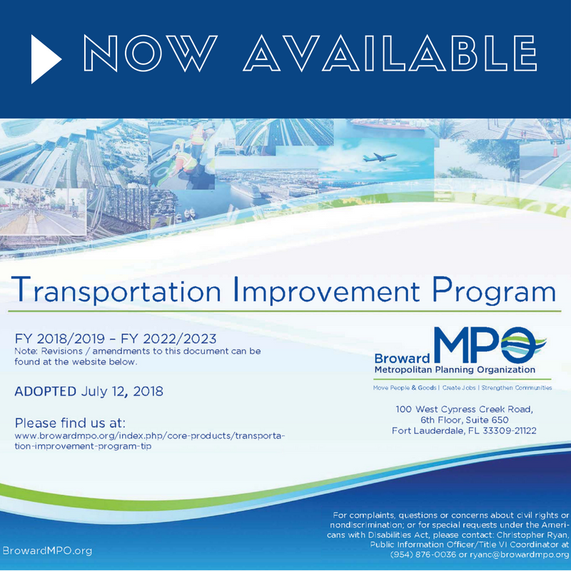 The Broward MPO's 2017-18 Annual Report is now available. Click the link to read more about what we've worked on in the past year.